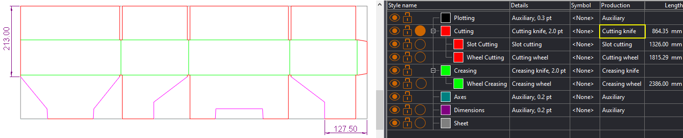 cutting rules and the sheet's edges for 1up and layout drawings.