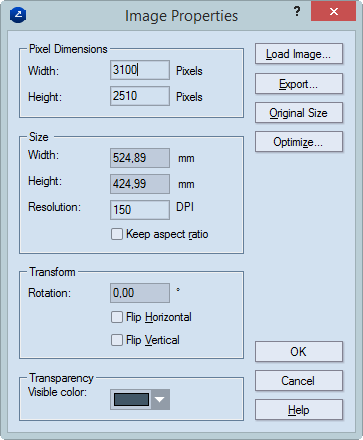 Optimize Opens a dialog box, in which you can set additional settings for the image and how it is applied.