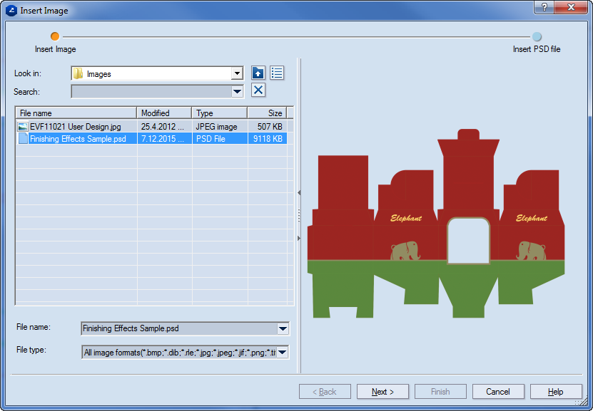 The Insert PSD file steps opens.