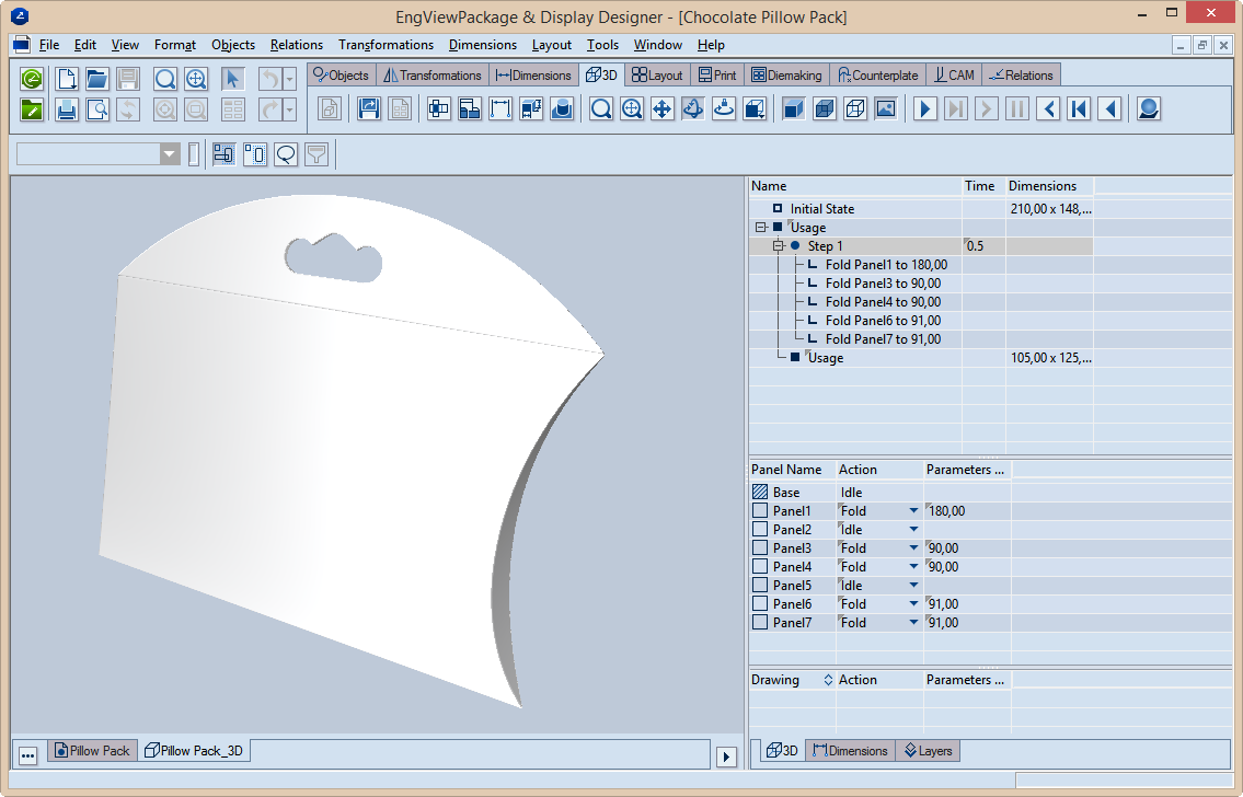 3D modeling takes place in a separate type of drawing, divided into two areas: