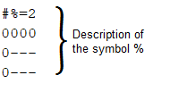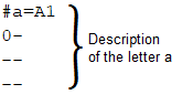 A Braille code characters are described individually after the following pattern: