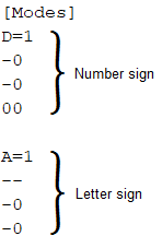 In the Braille code file, the character modes section comes after the [Params] section, in the [Modes] section.