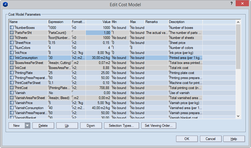 The newly created parameter appears in the list of the cost model — see Step 1.