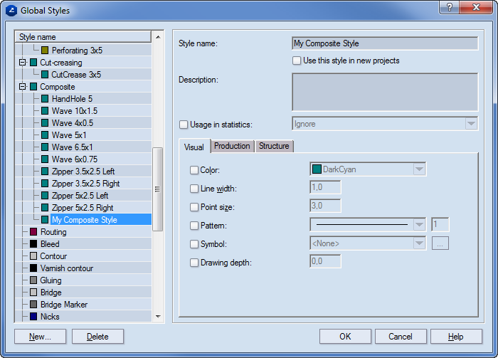 NOTE: The settings in the Visual tab define how the style will be displayed on the screen if View composites is not checked. This appearance is different from the physical appearance of the style on the media.