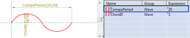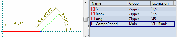 The horizontal distance between the two leftmost points at which the composite profile is repeated along the carrier. In the tablular area, the period is indicated by the parameter CompoPeriod.