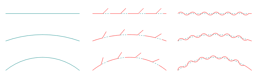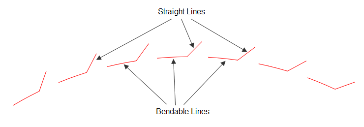 The bendable segments adopt the shape of the object on which the style is applied. The straight one remains as they were drawn regardless of the shape of the object.