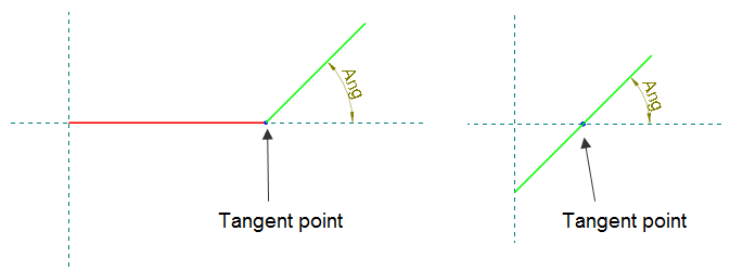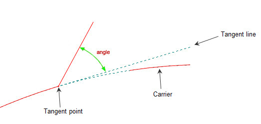 The point through which the tangent line is drawn that defines the angle at which a green segment (straight) intersects the carrier. IMPORTANT: The tangent point must be drawn in the Plotting style and in the color Blue. Learn how to apply a color to a style.