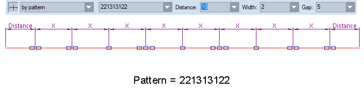 A pattern is applied for the nick placement. Starting from left to right, you set numbers for how many nicks you want the program to place at each go.