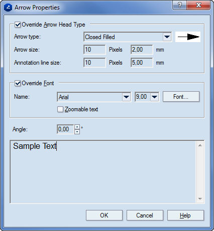 Override Arrow Head Type Sets the shape and appearance of the arrow heads.