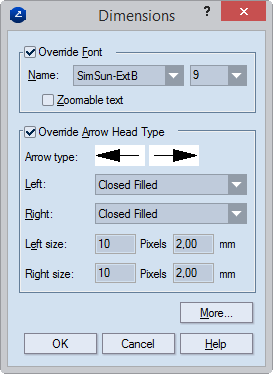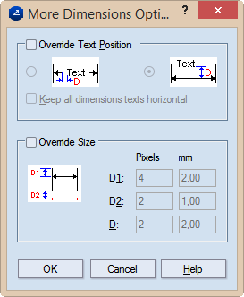 Override Size Sets the size of the dimension indications.