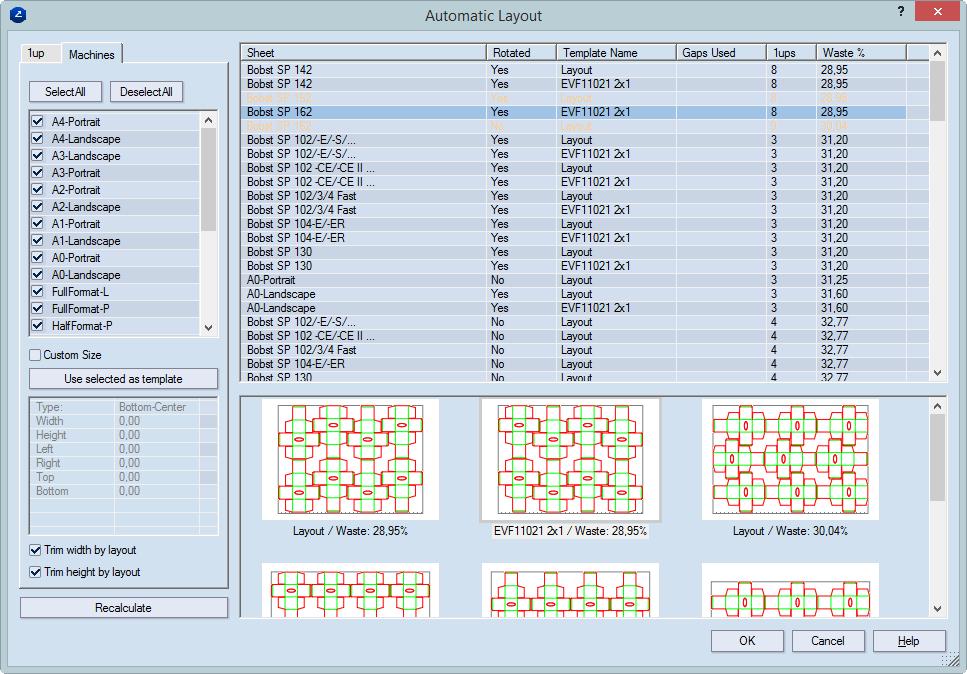Waste% Displays the amount of sheet area that will be lost for the respective sheet.