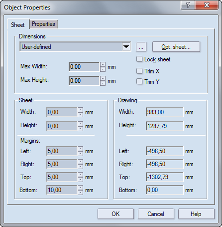 Max Height Sets the maximal vertical length of the sheet. If a specific sheet is selected in the dropdown list, its width and height values appear in Max Width and Max Length. Changes can be made to the length (in the Sheet area), but it cannot exceed the value set in Max Length.