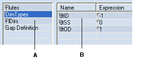 A selection type named DimTypes with three selection entries: A. Selection types B. Selection type entries