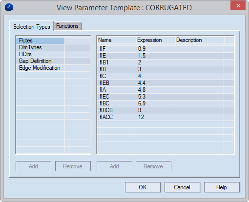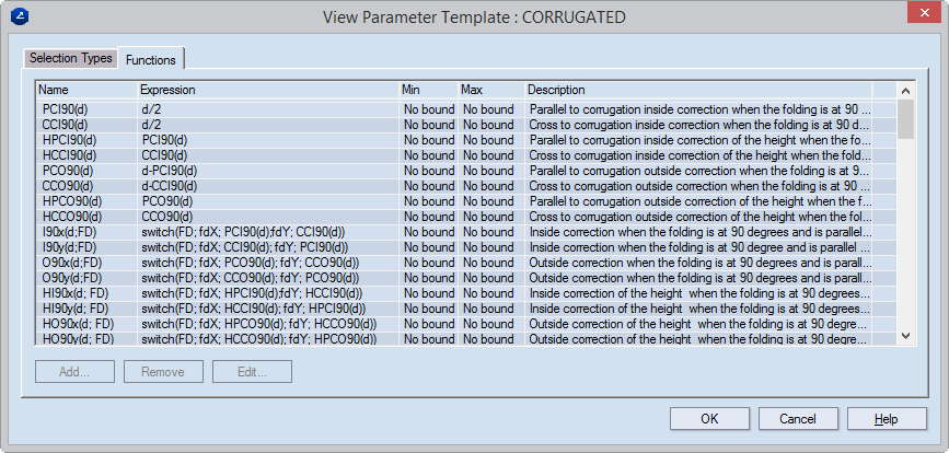 The View Parameter Template dialog box appears. It consists of two tabs: Selection Types and Functions.