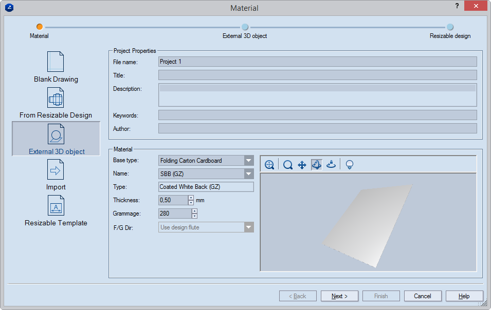 You can start a project by importing an external 3D object. This is the case where you have an object that you need to find packaging for.
