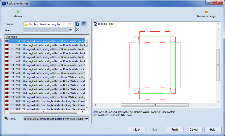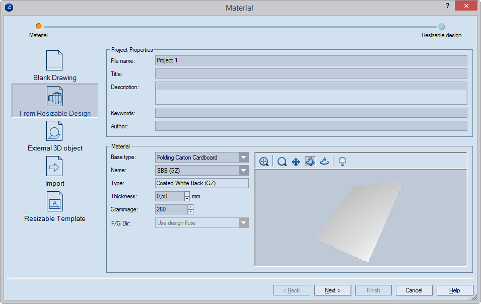 The Resizable design page opens. In it, you browse for and then select the resizable design that will serve as basis for your project.