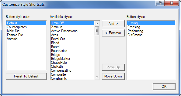 - To rearrange the styles as they will appear in the Styles toolbar, in Button styles select a style, and then use the Move Up and Move Down buttons to relocate the style across the list.