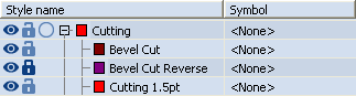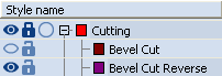 The empty-eye symbol means that the objects in the Bevel Cut Reverse style are not visible in the graphical area.