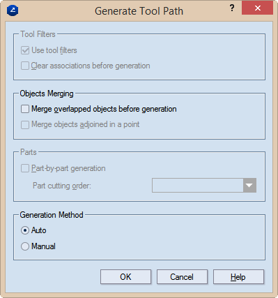 .The Tool Path Generation Options dialog box appears, in which you can set various options for tool path optimization. The optimal tool path is found automatically.