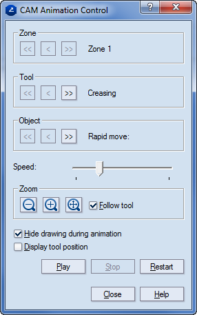 Hide drawing during animation Hides the CAM drawing during the animation.