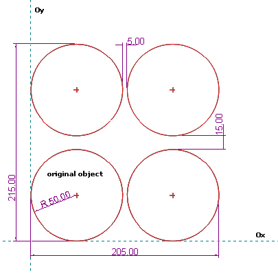 Distance Sets the step of the representations of the selected objects in the first direction of multiplication. Negative values result in arranging the array objects in the "reverse" direction along the auxiliary axis of representation. Value range: [–25400.00 mm, 25400.00 mm]; or, in inches: [–1000.00, 1000.00].