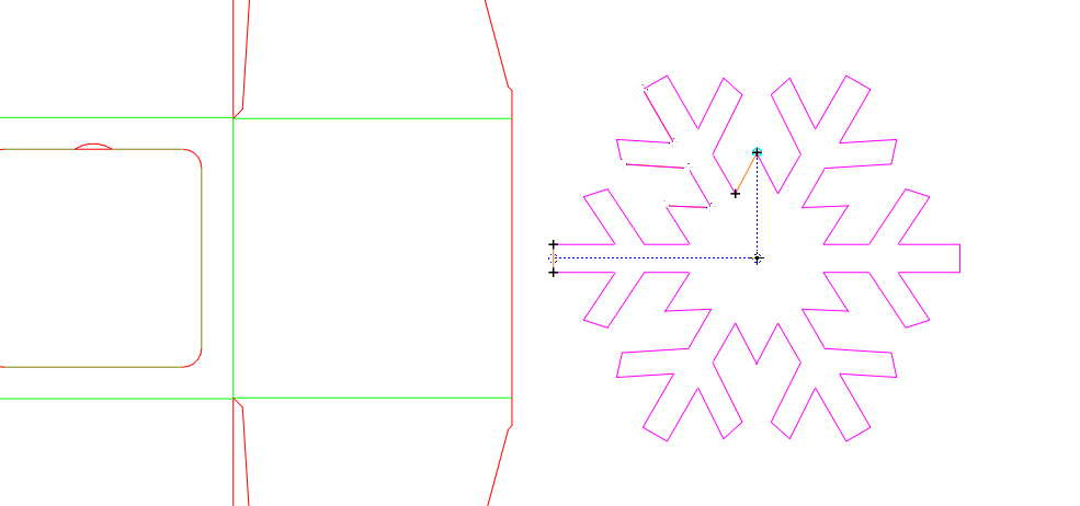 This technique scales a selection by extracting a reference by the distance between any two clicks and making it equal to a target distance. There are cases in which no suitable object exists to use as a reference for the drawing you want to scale. In such situations, you can use as a reference the distance between two control points (including a middle point). Follow the technique that follows, in which a snowflake fits a perforated hole (pictured).