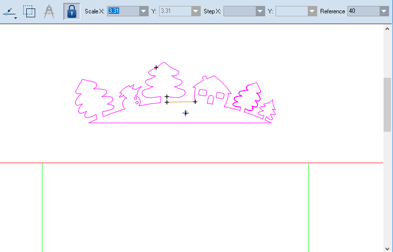 We proceed by setting the reference distance, which we will use to scale the selected shape. We will extract this distance directly from the drawing.