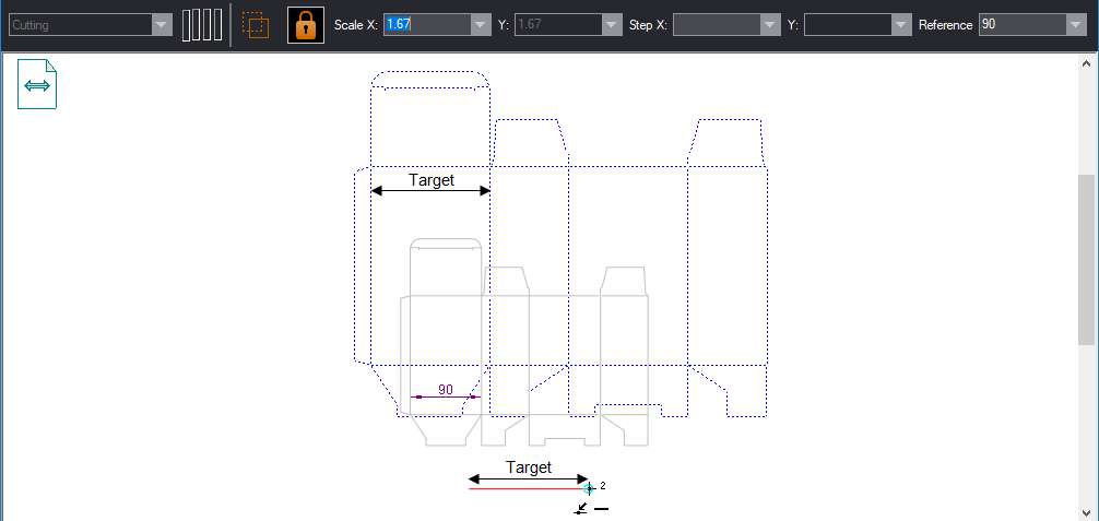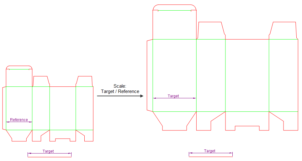 Scaling by a reference is most often applied when you want an object or distance — called reference — from a selection to adopt the length of another object or distance — called target. You do so by: