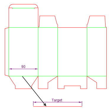 For example, you have a box sized 90 x 60 x 150, which you will scale proportionally so that the width 90 becomes identical with the length of an object outside the selection (pictured).