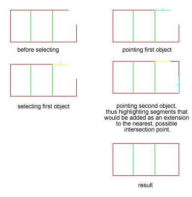 - In cases of conditional extension, the object may be extended automatically to one of the possible cross points regardless of the position of the mouse pointer. To prevent this, after selecting the object, hold down SHIFT, and then move the mouse pointer to the cross point that you want. The last object is highlighted, and the proper extension is detected in respect of the mouse pointer's position.