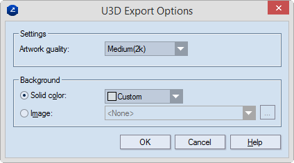 Artwork quality Sets the level of quality for the image in the exported PDF file: Low (1K), Medium (2K), High (4K).