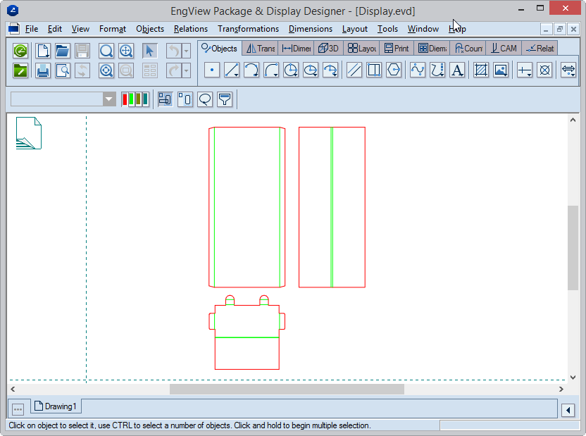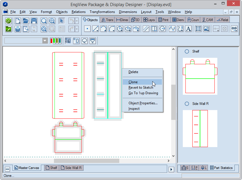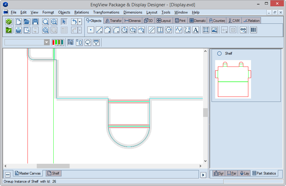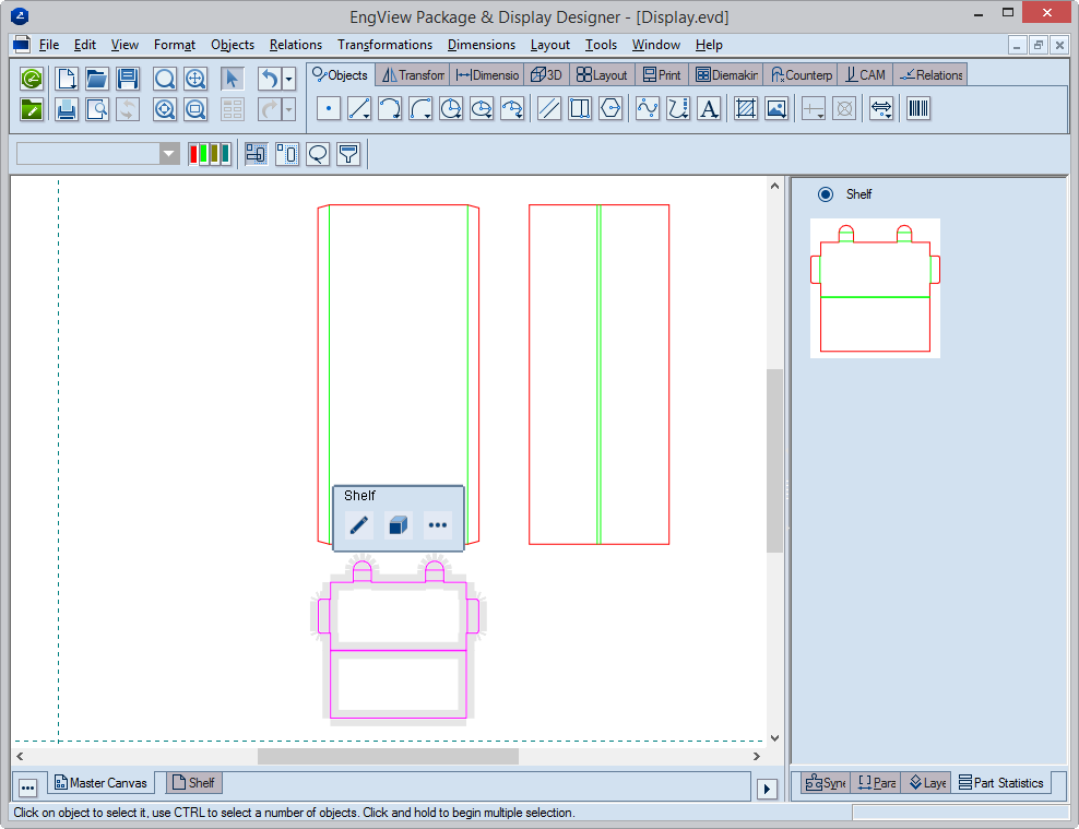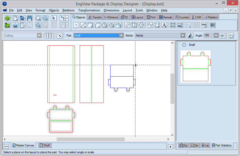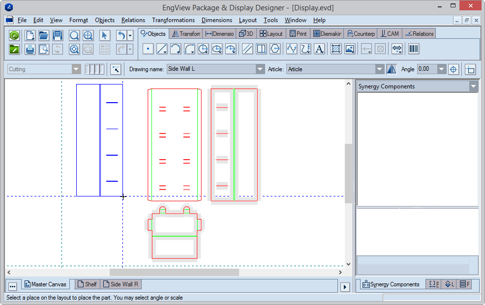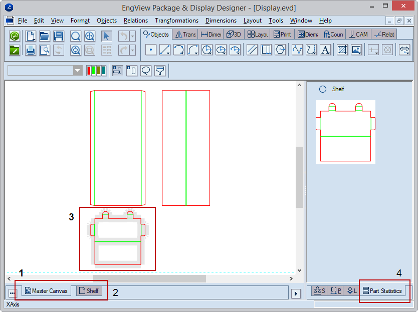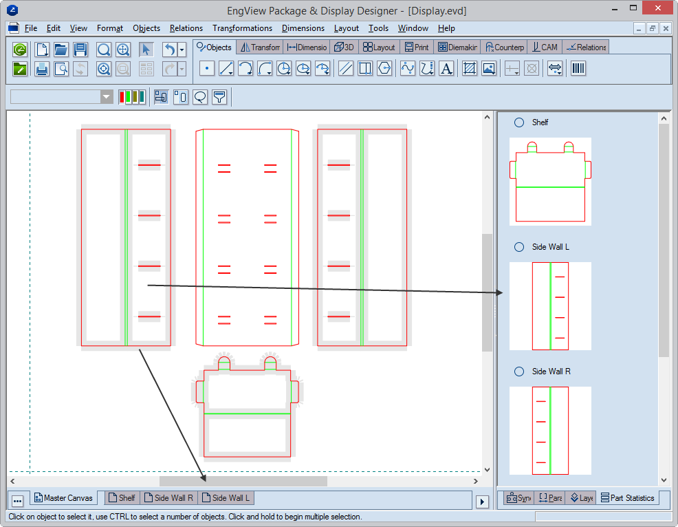 With Master Canvas you can draw multi-part structures — for example, displays or furniture — in a single drawing. You draw all the components of the structure in one drawing. Then you separate an individual component in its own drawing, in which you can add further modifications — for example, articles and 3D representations.
