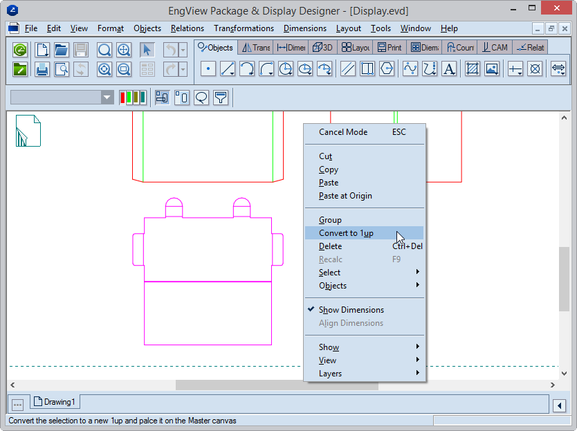 Creating 1up The 1up menu 1up actionsTo work with master canvas