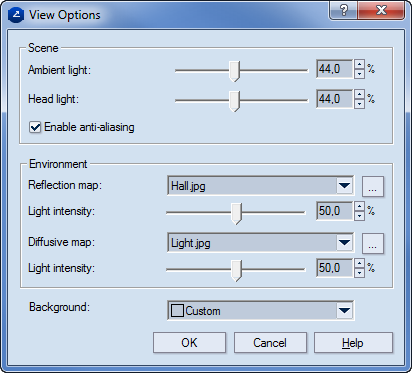 Reflection map | This is the image that comes from the environment and is reflected on the object's surface. The image set here becomes the default one for the exporting of models in the PDF or VRML formats. |