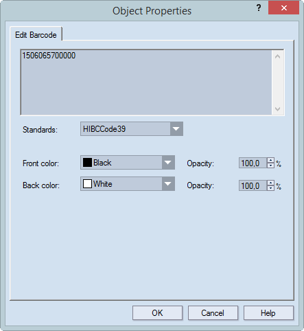 Standards Click the down arrow to view and select the list of available bar codes standards.