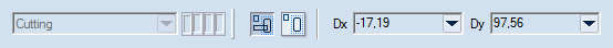- Relative Dx and Dy. Appear on the contextual edit bar only while you are repositioning an ellipse by dragging. Dx and Dy are the relative horizontal or vertical offset distances between the original and the repositioned ellipse locations as projected on the coordinate axes. The Dx/Dy values are, respectively, the Ox/Oy coordinate position of the repositioned ellipse less the proportional Ox/Oy coordinate position of the original ellipse.