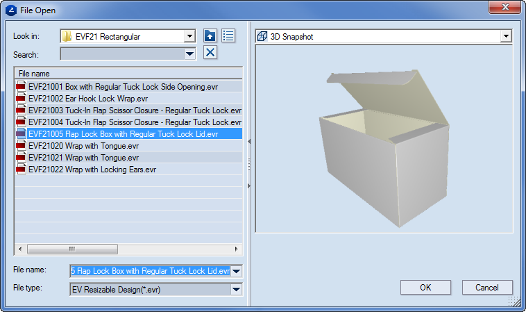 In the Open dialog box, you can use optimized search in the Library of Resizable Designs.