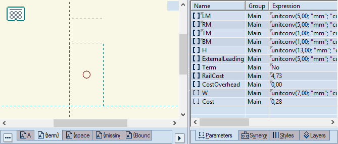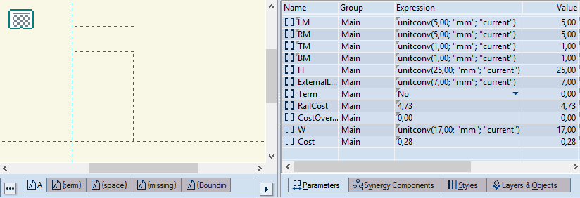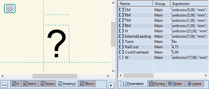 NOTE ON UNIT CONVERSION: A parameter's expression uses a three-argument function: unitconv(Arg 1; "Arg 2"; "current"), Arg 1 is a value; Arg 2 sets the measurements units for the Arg 1 value when it was set; Arg 3=current guarantees that when you apply the font to a structure, the Arg 1 value will be converted in currently used metric units. See the following example: