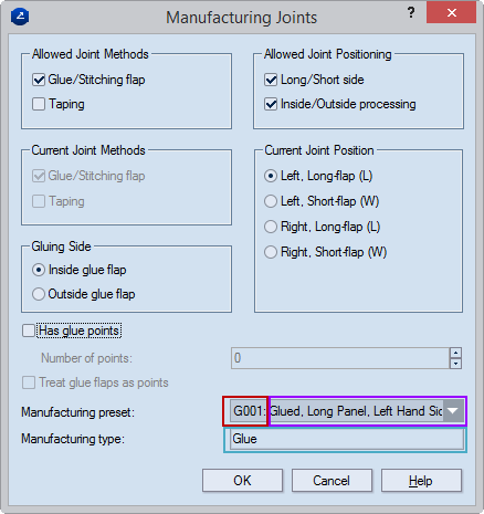 Preset description | $OneUp1.mfjdescr()$ | Glued; Long Panel; Left Hand Side |
