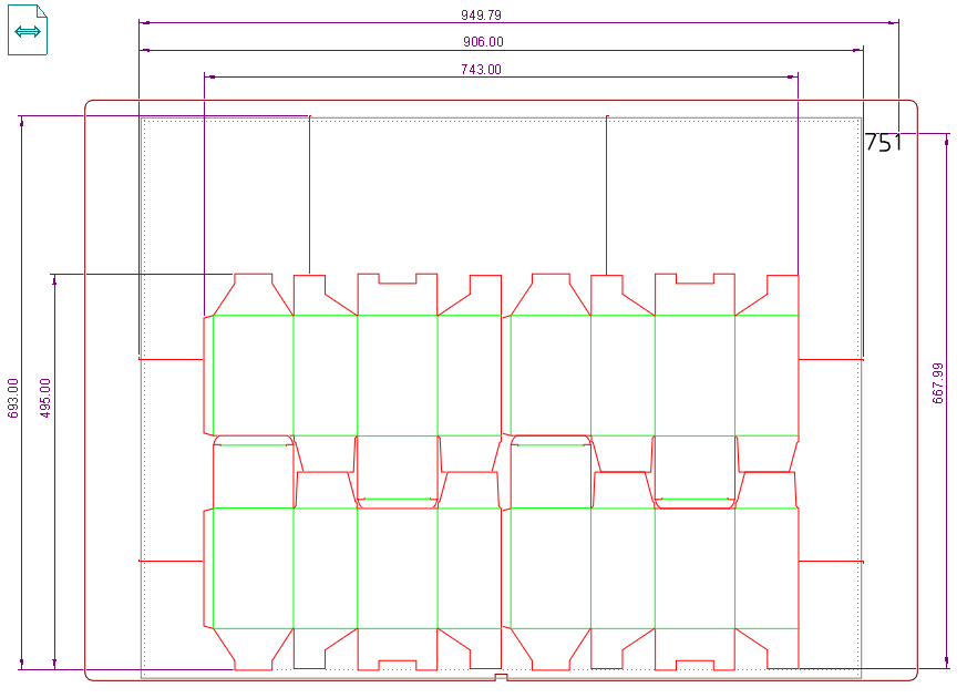 Horizontal endmost rules in Layout1. | mm | Ignored | Ignored | $Layout1.RuleToRuleWidth(mm, no)$ mm | 743.00 mm |