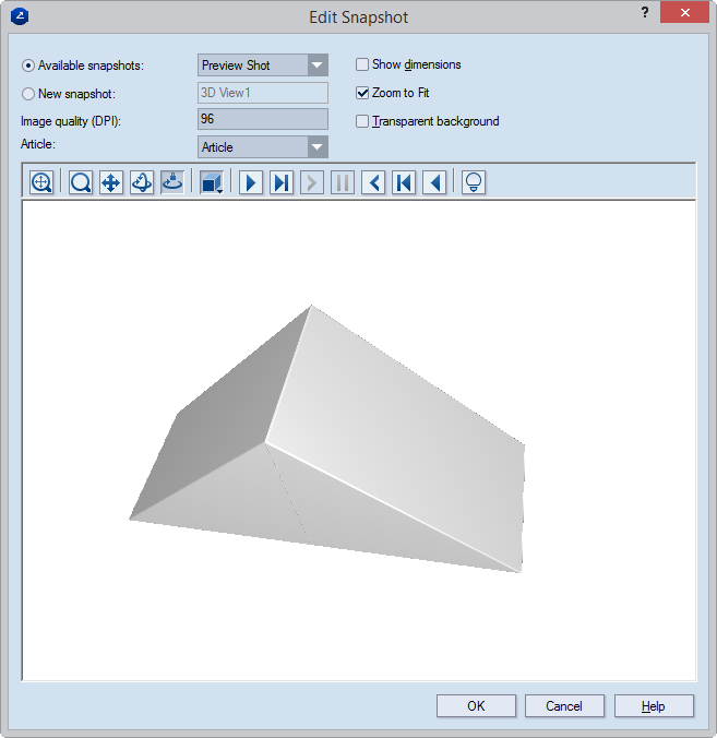 Available snapshots Opens a list from which you can choose an existing snapshot, which will be used in the print drawing.