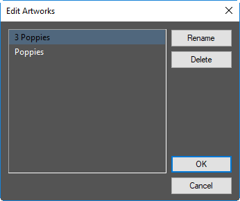 You can also delete artworks you will no longer be working with. Before deleting an artwork, make sure that it is not applied in any article. Deleting an engaged artwork may result in unexpected results in articles.