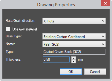 Use own material Overrides the material set for the project and allows the use of another material for the current drawing. NOTE: If the check box is unavailable, this means that a certain material has already been set for the whole project. If you want to change the material of specific drawings, (1) enable the use of different materials in the project, and then (2) select the check box and set a new material for the current drawing.