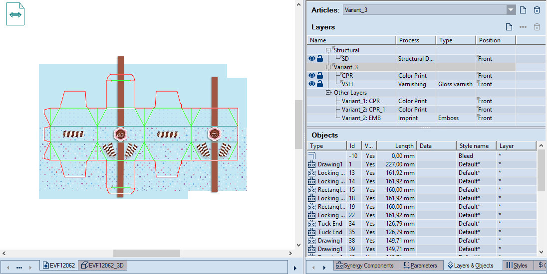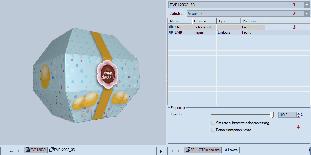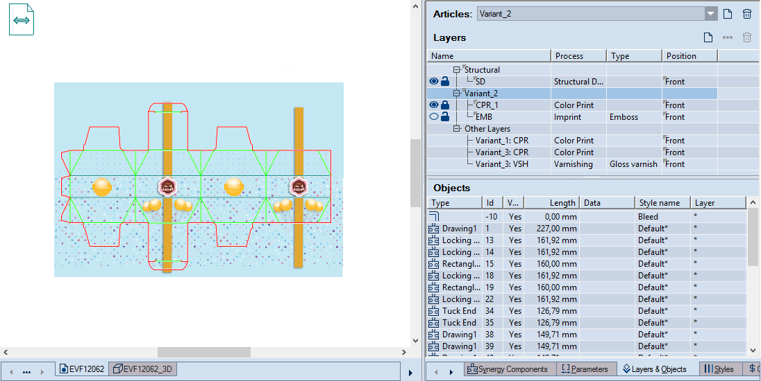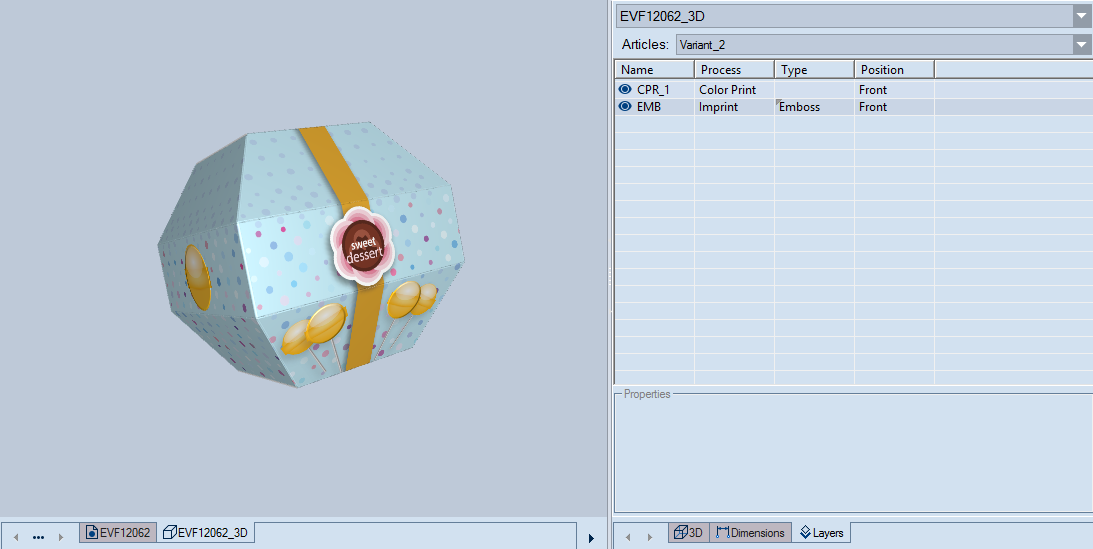 Variant 2. Applied layer-borne effects: color print, embossing (1up view)