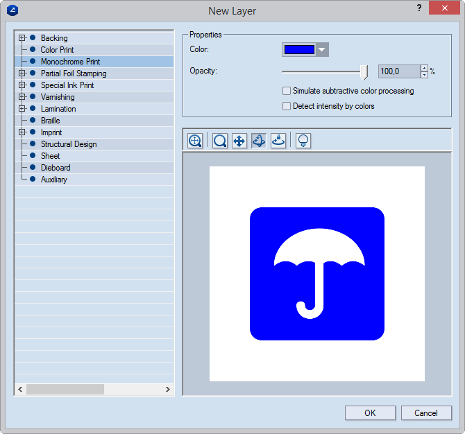 Before applying a printing or finishing effect to an object, you must create a process layer to carry the effect. After you have created the layer, you can proceed by assigning objects in the design to the process layer. An exception are the processes backing and lamination, which are applied onto the entire design and need no specific objects.
