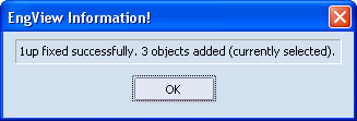 The correcting components have been added to the 1up. For easier further check, they remain selected. Note also that the original components are kept in the layout.