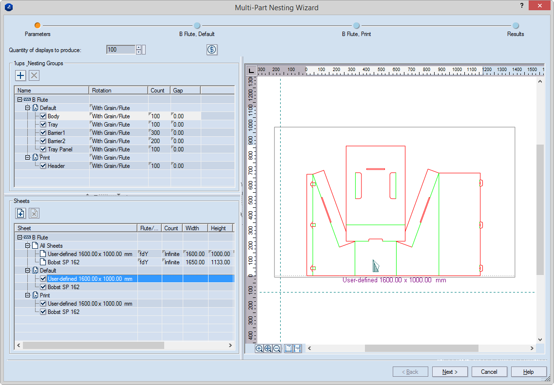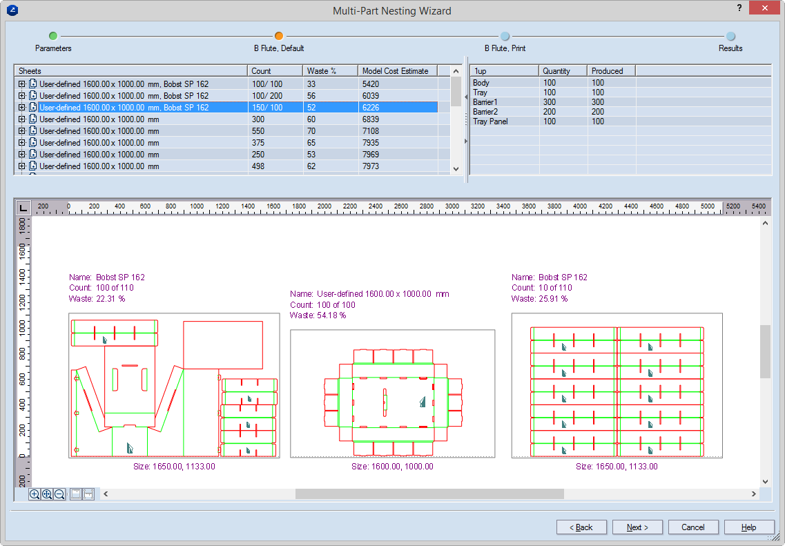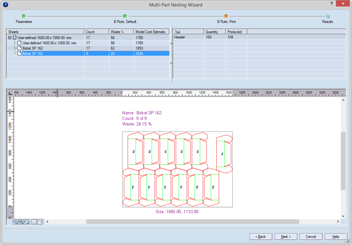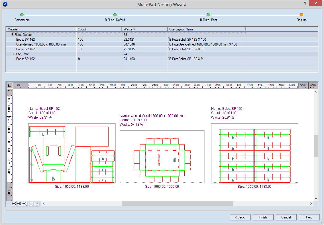 The Results page of the wizard appears, which is an overview of the selected nesting plan.