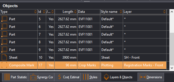 - In the Layers & Objects tab, select the print mark object row.