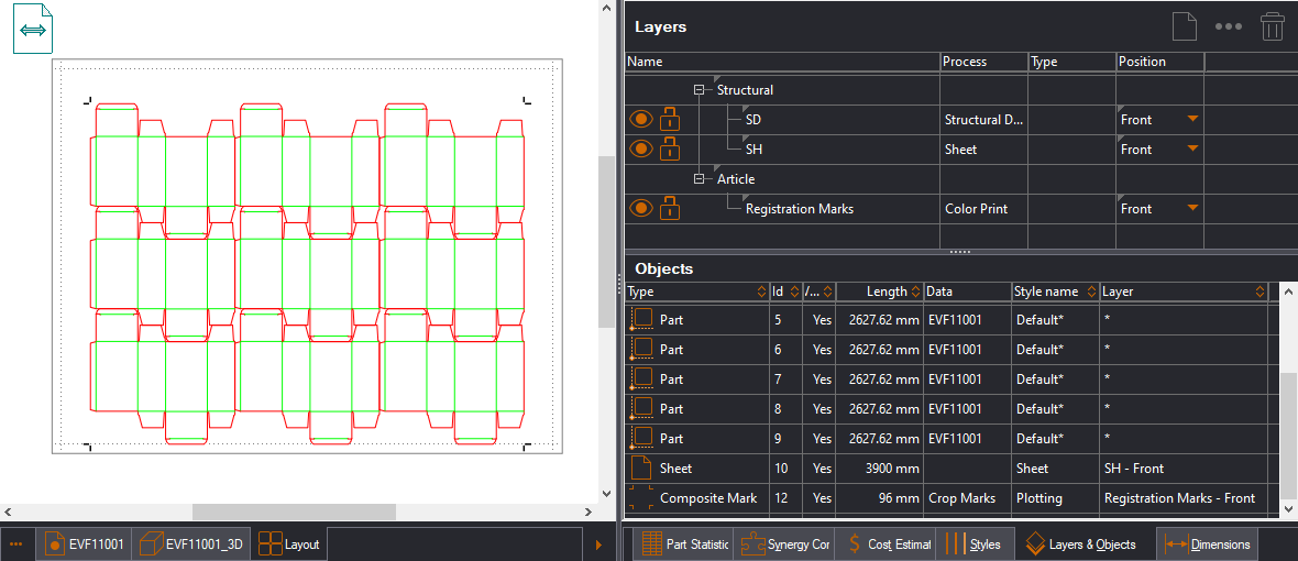 - In the tabular area, create a layer to which you will assign the print marks.