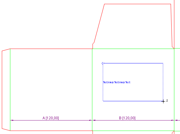 Text areas are always rectangular. Text areas added to the 1up drawing are automatically transferred to the drawings layout, CAM, print and 3D drawing.